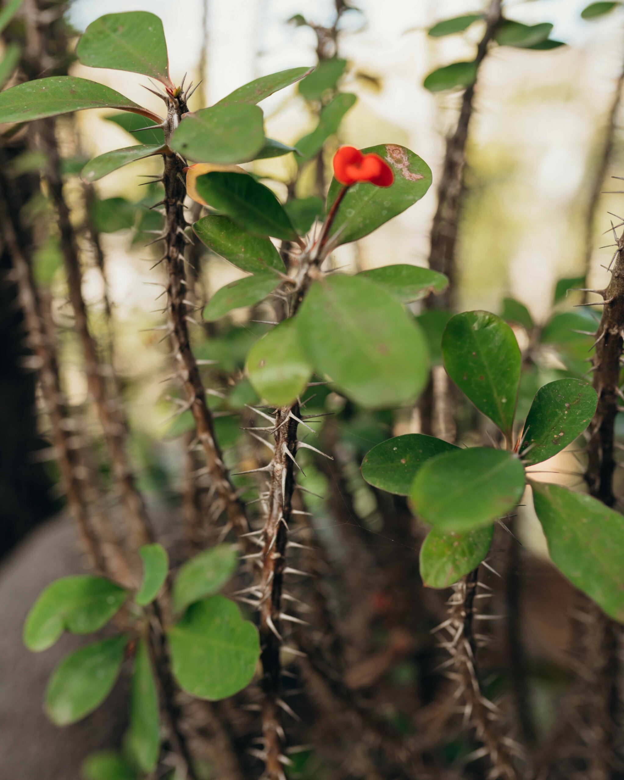 Euphorbia milii is one of the succulent species of the spurge family. At its place of origin in Madagascar, it has specialised in surviving without regular watering.
